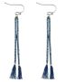 Os brincos de borla fina com pérolas e borla pequena em azul são adequados para todas as ocasiões.